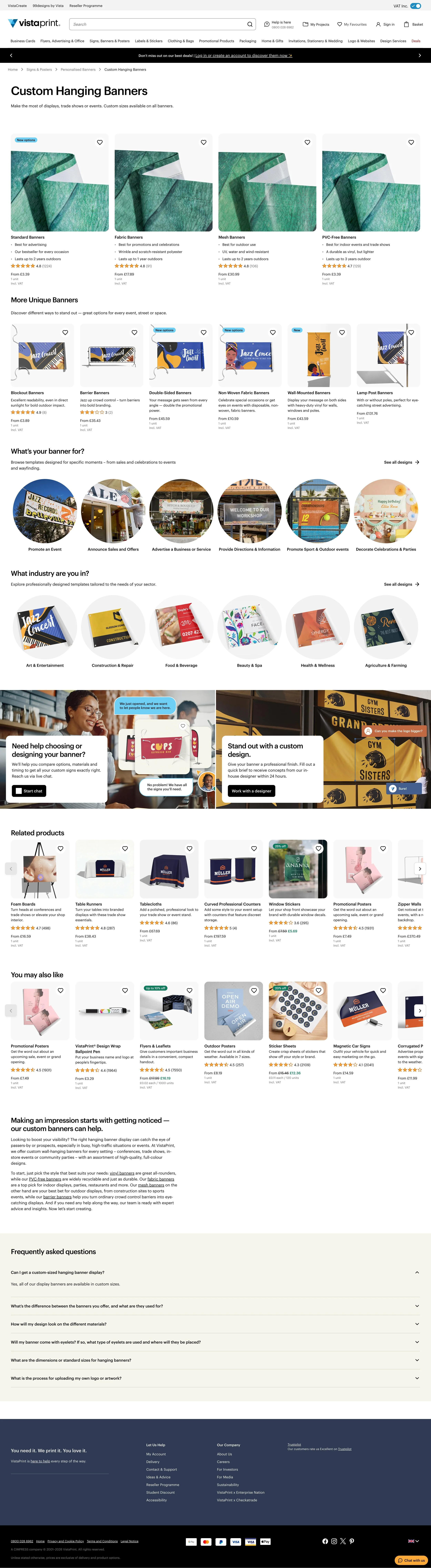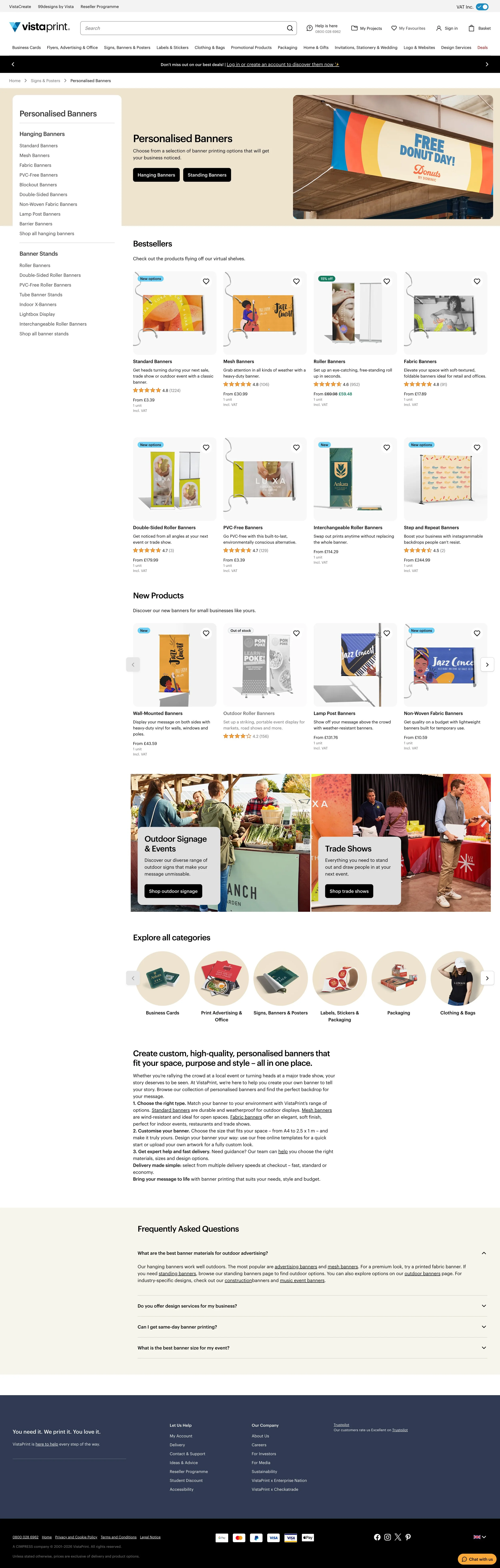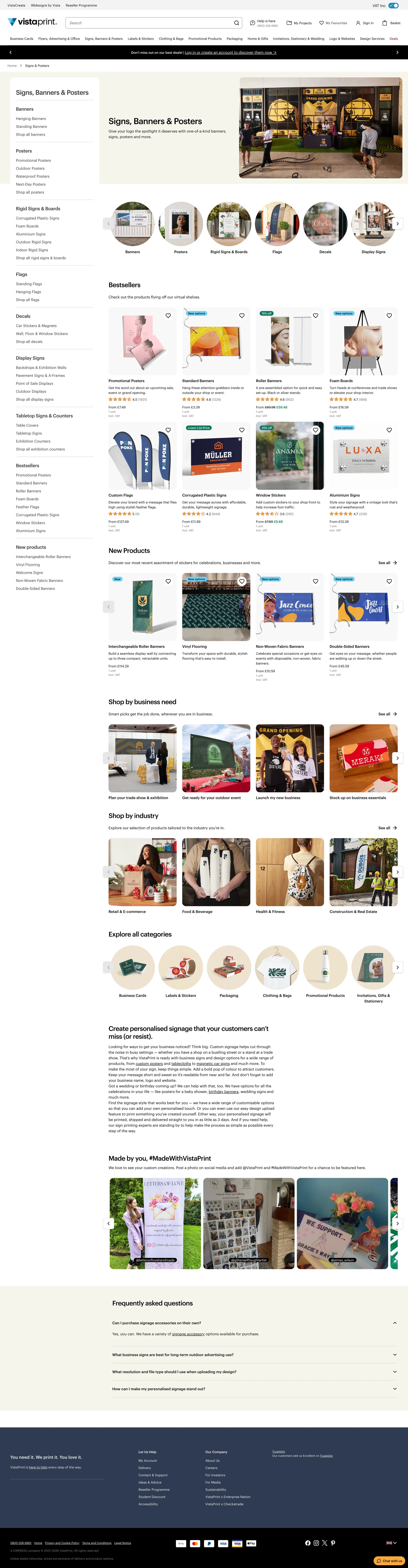 The category page experience was inconsistent, for customers trying to find what they needed, and for the teams working to keep everything running. Navigation patterns varied across the site, making discovery feel unpredictable, and maintaining pages manually just wasn't sustainable at Vistaprint's scale. Things got more complex when a structural update introduced a three-tier hierarchy — a top-level category (e.g. Signs & Posters), a subcategory (e.g. Banners), and a tertiary level (e.g. Hanging Banners) — before landing on a product page. The intent was right, but the execution left gaps. Inconsistencies across all three levels created friction for users navigating the site and made life harder for the teams behind it.