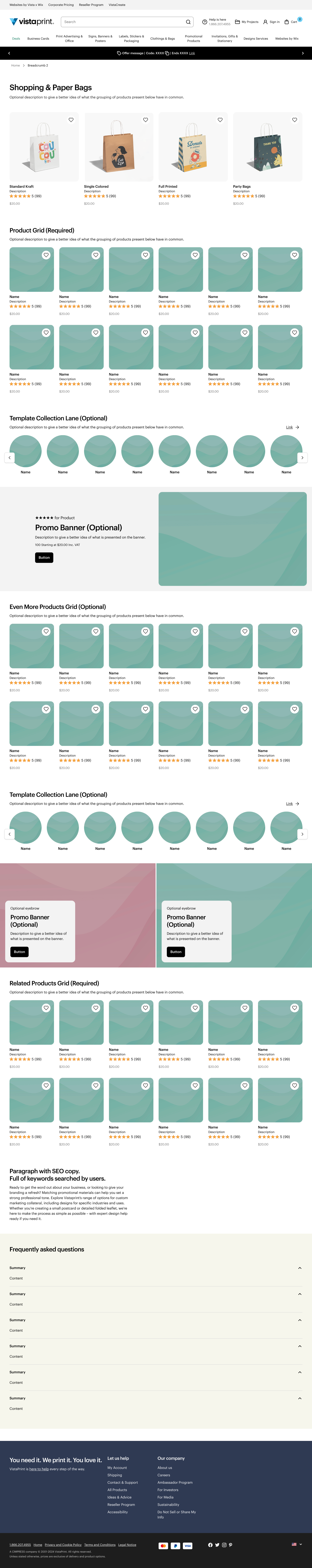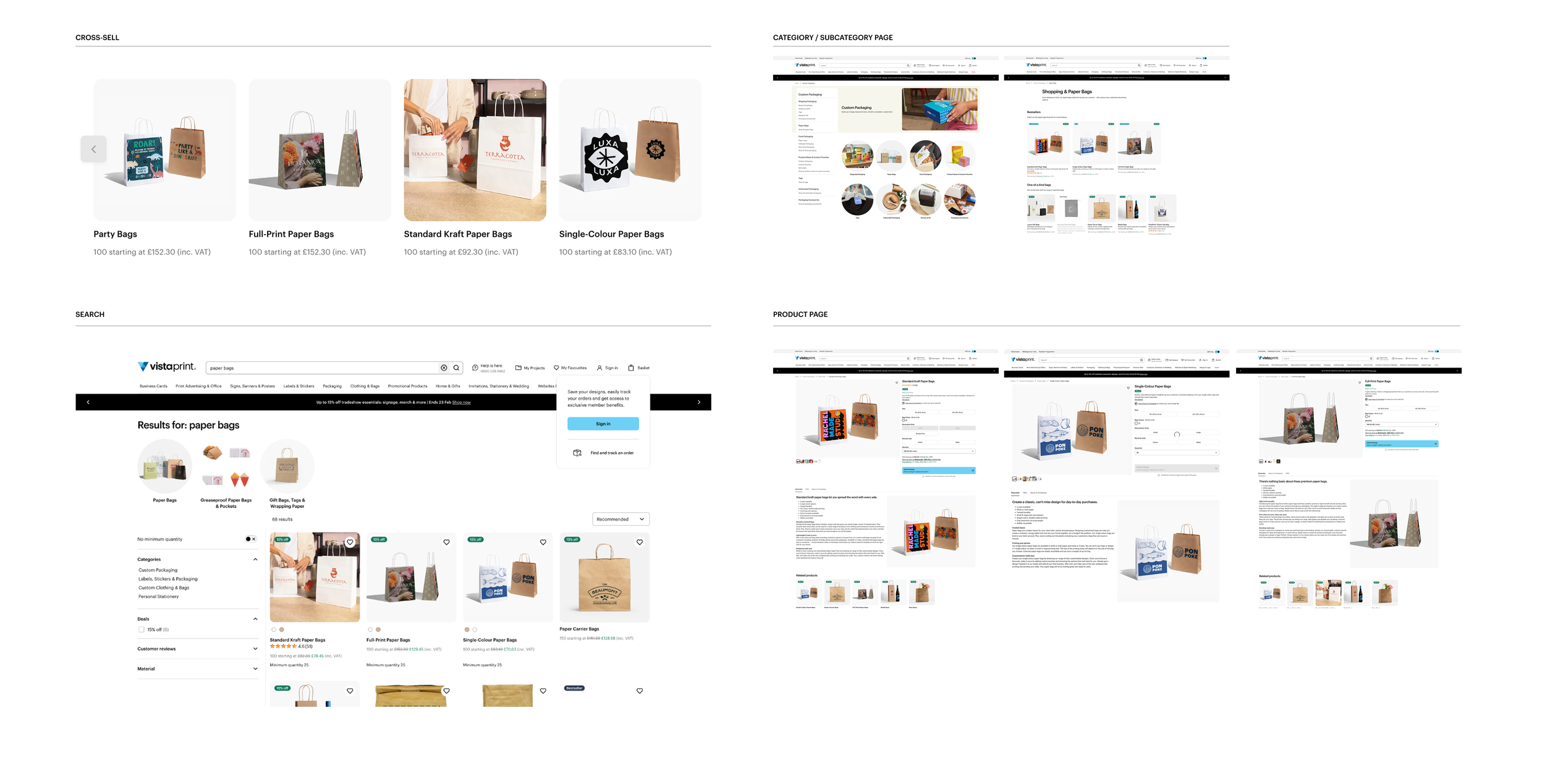 Refresh the Paper Bags subcategory page, by introducing new imagery that highlights the full range of print options and use cases. From category to product pages, the redesign aimed to create a more inspiring and informative shopping experience.